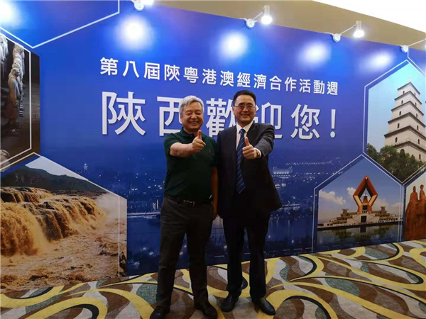 陕西省商务厅副厅长王宏伟(右)与香港商报陕西办主任傅博合影。