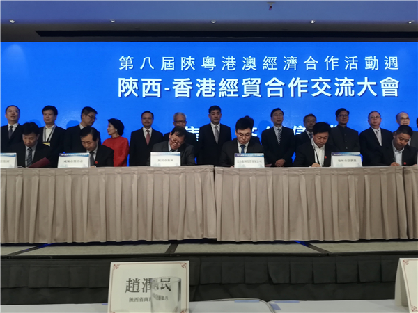 陕西省副省长魏增军,中联办副主任仇鸿,外交部驻香港特别行政区特派员公署副特派员杨义瑞,陕西省政府副秘书长魏稳柱,香港贸易发展局副总裁叶泽恩,全国政协常委、新华集团主席蔡冠深,全国政协常委、丽新集团主席林建岳,香港中华厂商联合会会长吴宏斌,香港工业总会主席郭振华,香港总商会中国委员会副主席陈绍雄,陕西海外联谊会名誉会长、凯富能源集团主席许智铭,香港陕西联谊会会长、正大制药集团总裁郑翔玲,香港中国企业协会副总裁朱莉等见签。陕西省商务厅厅长赵润民主持签约仪式。