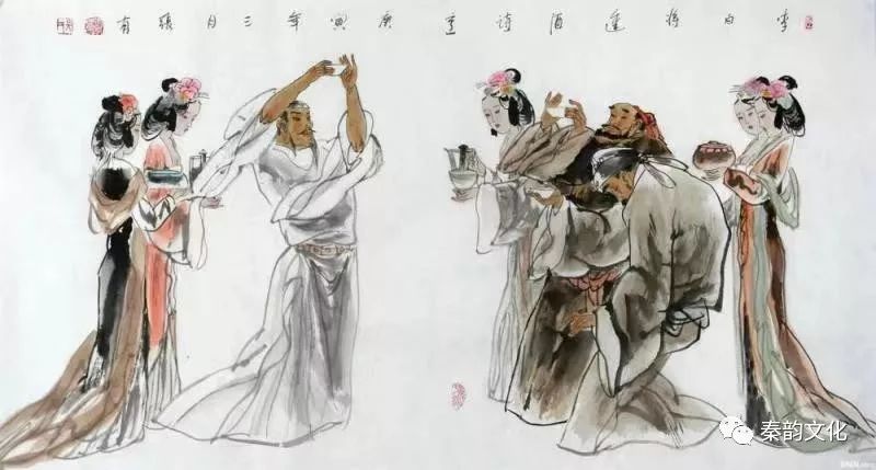 李白的诗歌写酒写月最多,寄托什么呢?先说“酒”,代表作《将进酒》,理想很丰满,现实很骨感,内敛汉族人。“群居终日,言不及义”,酒入愁肠,变得外向,变得豪放。超越了骨感的现实,酒是遗忘,酒是超越,酒是舞蹈。余光中讲李白,最闪亮的句子是:“酒入愁肠,七分酿成了月光,余下三分啸为剑气,绣口一吐,就是半个盛唐。”