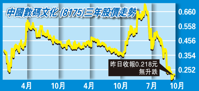 中國數碼文化(8175)現主要從事電影、電視及音樂內容的特許權業務;於電影、電視及音樂劇製作之投資;網絡直播代理業務的營運;明星電子競技戰隊的營運;授出體育賽事內容的特許權及向專業運動員提供營銷及宣傳服務;電影文化及旅遊主題公園的營運並提供相關諮詢服務等。