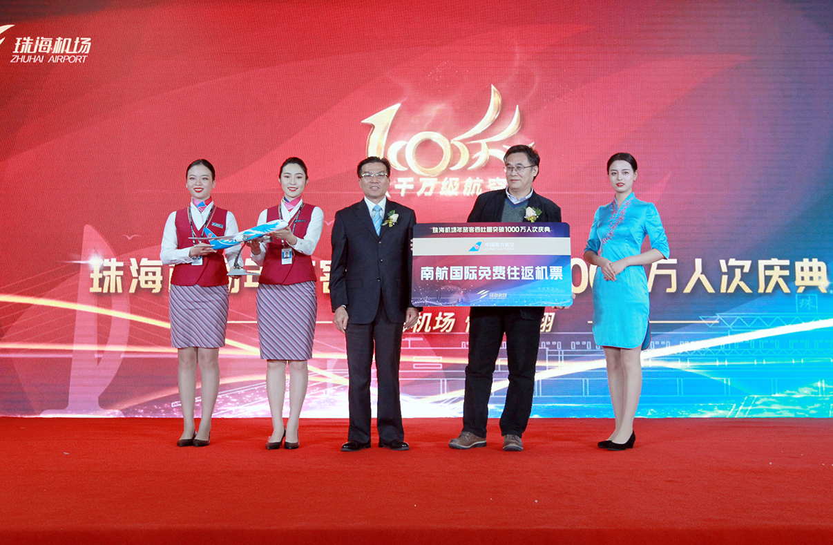 “我经常乘坐南航往返珠海北京的航班,没有想到今天会得到这样一份落地的惊喜。”在当天珠海机场举行的年旅客吞吐量突破1000万人次庆典仪式上, 乘坐南方航空CZ3740航班的旅客刘先生幸运地成为了“第1000万名旅客”,他高兴地从南航珠海公司总经理彭铁山手中接过了由南方航空提供的国际往返免费机票及礼品。