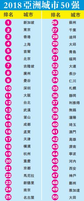 【香港商報网訊】近日,英國皇家學會發布了《2018亞洲城市50強的綜合排名》,香港、上海、北京、廣州、深圳五座中國城市位列前十,佔據半壁江山。排在第一的是新加坡,東京、香港緊隨其後。