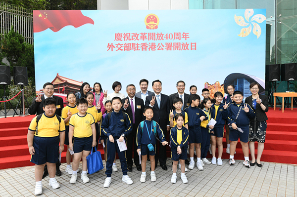 【香港商報网訊】記者林駿強報道:外交部駐香港特派員公署昨日舉行「改革開放40周年大型開放日」活動,邀請來自50多所學校的1800多名師生及青年到訪公署。特派員謝鋒表示,這是公署首個面向學生及青年的開放日,希望來賓能了解公署、感知外交、心繫國家。他又說,今年是國家改革開放40年,公署的大門會向青年、市民敞開。到場參觀的年輕人都紛紛讚好,認為活動令自己獲益良多,進一步了解外交知識。