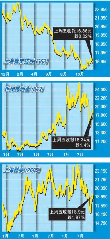首屆中國國際進口博覽會本月初於上海舉行,國家主席習近平於進博會開幕式發表演講稱,將增設上海自貿區新片區,支持上海國際金融中心和科創中心建設。這意味上海的發展將進一步提速,消息一度刺激A股上海概念股走高。港股中要捕捉上海概念股,可留意內房及藥股等板塊,上海實業(363)、世茂地產(813)及上海醫藥(2607)值得留意。