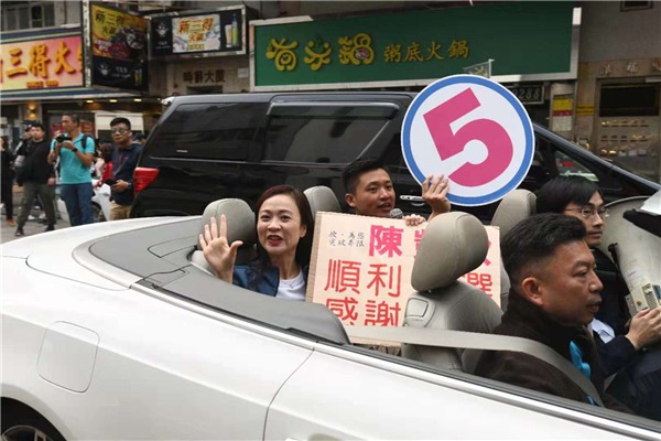 【香港商报网讯】在立法会九龙西补选胜出的陈凯欣,下午到九龙城谢票。她到九龙城街市向市民及档贩致谢,又与支持者合照。陈凯欣感谢所有投票支持她的选民,指已收到立法会秘书处通知,星期三便要宣誓,工作马上要展开。