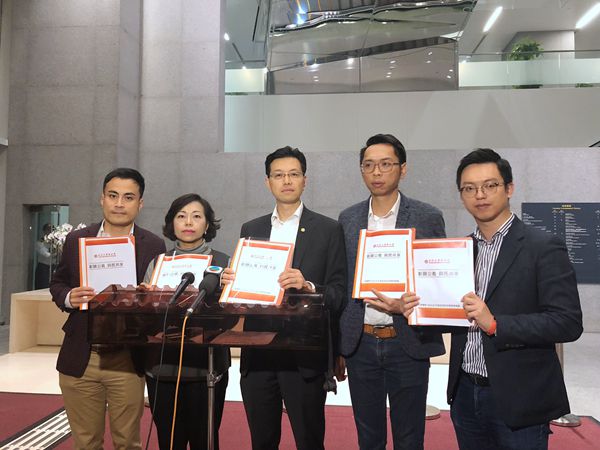 工聯會會長吳秋北(中)率同會方立法會議員提出多項財政預算案建議。記者 馮煒強攝