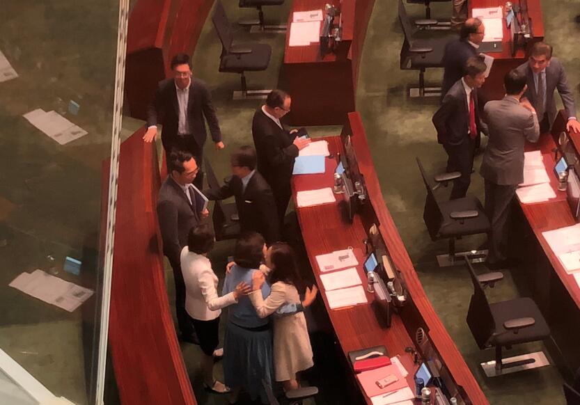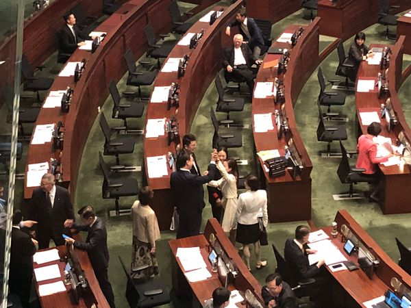 民建联李慧琼等部分建制派议员在宣誓仪式完成後,与陈凯欣握手恭贺。