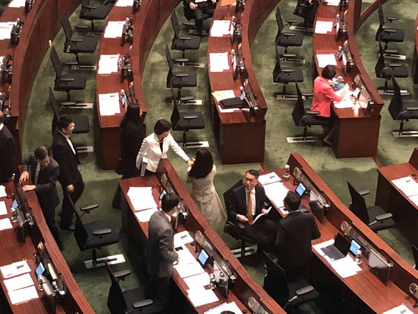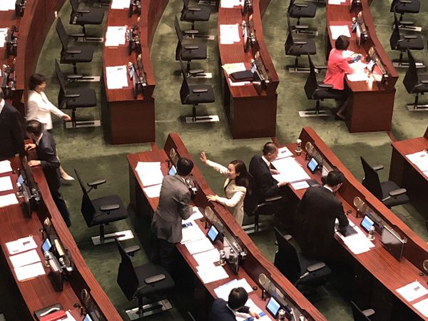 陳凱欣首日到立法會工作,早上約10時45分,她經議員通道進入立法會大樓,並進入會議廳,陳凱欣逐一與議員握手、寒暄,當中亦包括反對派議員,眾議員都表示歡迎。