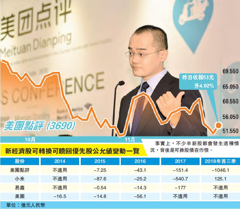 以去年上市的「新經濟三寶」之一的易鑫為例,公司去年就因可轉換可贖回優先股的公允值變動,蝕了177億元,按年擴大逾11倍,拖累去年全年勁蝕183.3億元。不過,公司表示上市後所有優先股已自動轉換為普通股,因此於2018年及往後,不會再產生可轉換可贖回優先股的公允價值損失。