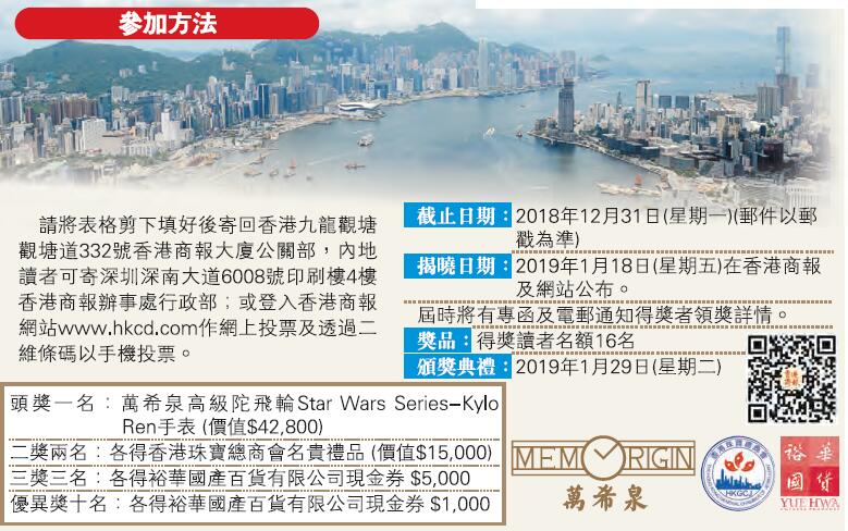 揭曉日期:2019年1月18日(星期五)在香港商報及網站公布。