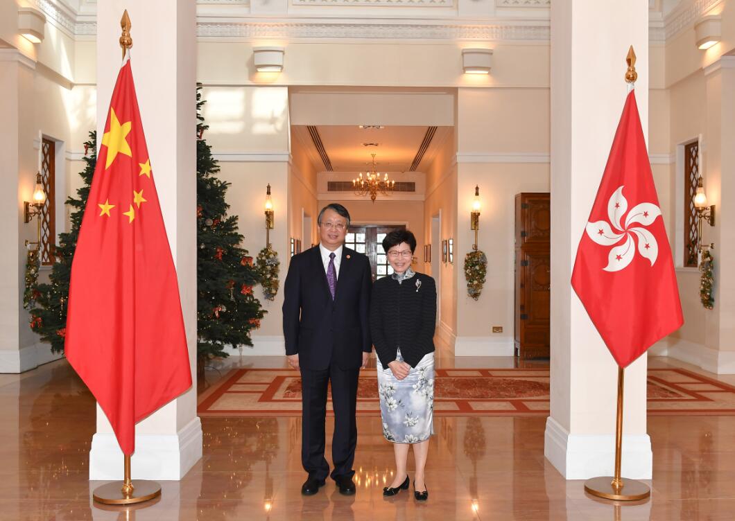 沈春耀昨日下午於禮賓府與行政長官林鄭月娥、政務司司長張建宗、律政司司長鄭若驊等官員會面。