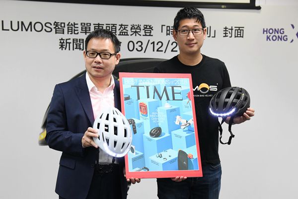 本地原創發明「Lumos智能單車頭盔」獲《時代雜誌》評為「2018年50大最佳發明」,該產品由Lumos路明科技有限公司研發,產品並在今年5月進駐美國、加拿大、歐洲等逾300間蘋果專賣店銷售。Lumos公司創始人陳有運及陳浩然在哈佛大學上學時,主要以單車代步,而陳有運更有數次與「死神」擦身而過的經歷,因司機在天黑或非常繁忙的街道上,未必能看到騎單車人士,故二人靈機一觸,決定設計研究一款會打燈號的智能頭盔。