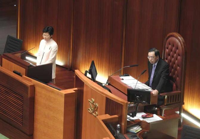 【香港商報网訊】記者林駿強報道:行政長官林鄭月娥今日上午到立法會,出席長約半小時的質詢環節,接受議員提問。多名泛民議員在會議廳大吵大鬧,主席梁君彥要求泛民议员離開會議廳。其後議員持續在會議廳內叫囂,梁君彥宣布答問大會取消。今次是林郑开始每月到立法会进行30分钟答问会以来,首次因议员抗议而须结束会议。