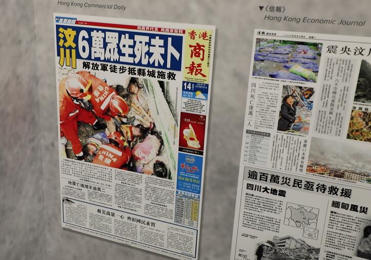 新聞博覽館內關於汶川地震的專題報道內藏有當日的香港商報頭版。