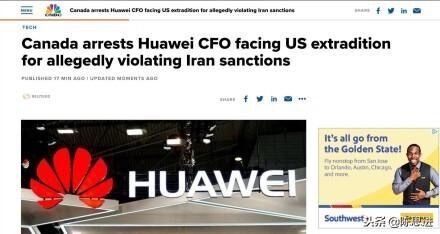 【香港商报网讯】最新外媒消息,加拿大已经逮捕了华为在温哥华的全球首席财务官---任正非的女儿孟晚舟,因华为涉嫌违反美国对伊朗的制裁而面临引渡美国的问题。