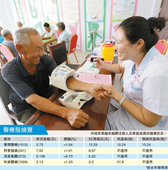 近日基因編輯嬰兒事件持續遭到各方批評及譴責,但事件也間接反映內地生物醫療科技發展迅速,醫療相關概念股再成為市場焦點。事實上,內地民眾越來越關注個人及家庭成員的健康狀況,因此內地醫療股不再停留於治療疾病的層面,更多的是朝着大健康產業進發。若要挑選具長線投資價值的醫療股,可留意華潤醫療(1515)、阿里健康(241)及茂宸集團(273)。