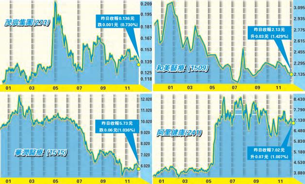 今年以來醫療股一直是市場焦點板塊,上半年不少醫療股股價都屢創新高。不過,自從內地7月中旬爆出A股上市公司長生生物科技的假疫苗事件後,內地當局隨即着手整頓醫藥市場,國家藥監局多名官員被免職,醫藥股新藥審批速度顯著減慢,整個醫療或醫藥股亦遭評級下調。再且,下半年市況波動,醫療股表現普遍不理想,惟個別醫療股憑着業務重組及轉型等,股價造好。