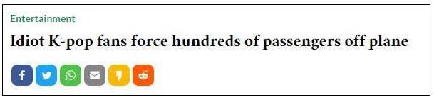 值得一提的是,爆出这条新闻的韩国时报在新闻标题中直接使用了idiot(白痴)来形容这几名粉丝。