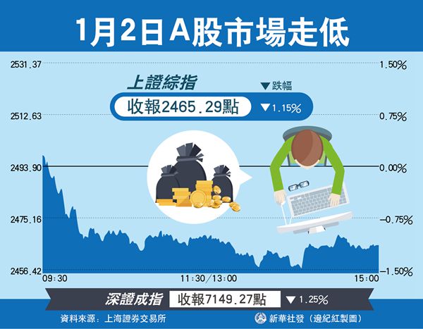 資金觀望 A股「開門黑」 滬指收盤創逾4年新低