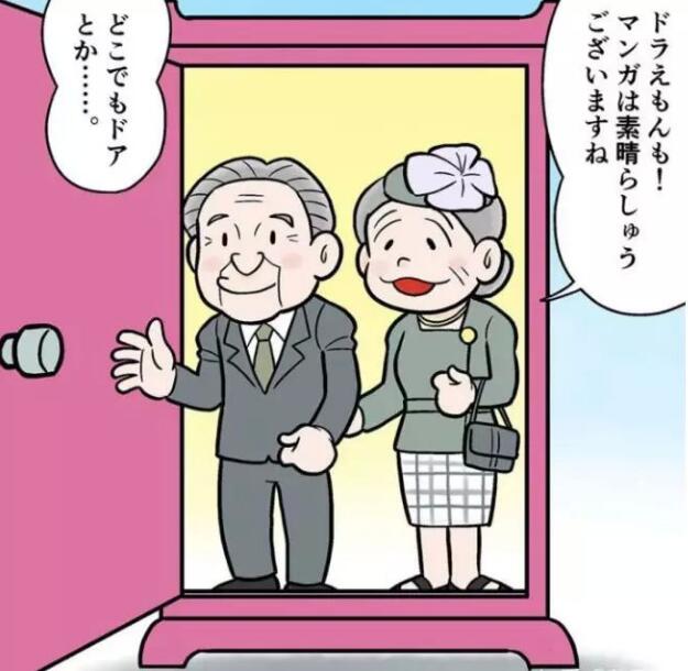 ▲网友所画藤子·F·不二雄风格的天皇夫妇和任意门