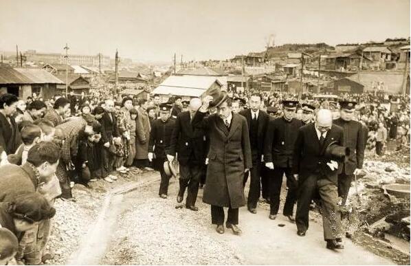 在此期间裕仁广泛接触民众,广大日本老百姓有生以来第一次目睹了天皇“龙颜”。他们发现,长期以来一直被当作神供奉膜拜的陛下,原来是个小矮个,脚步都迈不好,举止有点生硬甚至笨拙。为了掩饰深入人群的紧张,他动不动就脱帽挥舞,这副蹩脚模样的天皇与战争期间媒体塑造的那个一身戎装、沉着威武的国家统帅形象相比真是天差地别。