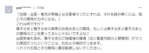 然而一些日本网友并不买账,他们直接指出,德仁并没有保护好雅子。雅子虽被媒体报道为“产后抑郁”,但网友认为是德仁没有协调好雅子与“婆家”的关系,让雅子痛苦。