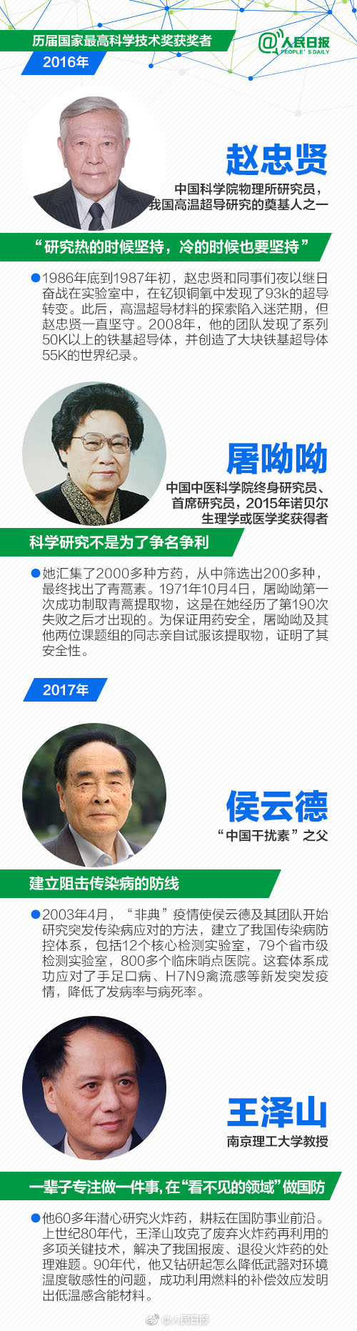 今天,2017国家科学技术奖励大会开幕。#国家最高科技奖#,是中国科技界的最高荣誉。自2000年设立至今,18年,共有29位科学家登上了我国科技界最高领奖台。今天,一起转发,致敬,中国科学家!加油,中国科研事业!