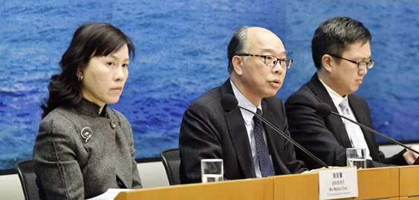 運房局局長陳帆(中)及運輸署署長陳美寶(左),就《专营巴士服務獨立檢討委員會報告》舉行記者會。 中通社