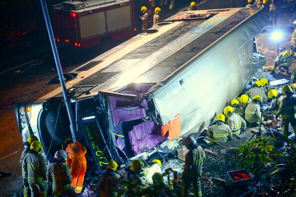 去年2月10日,大埔公路發生九巴翻側車禍,造成19人死亡。資料圖片