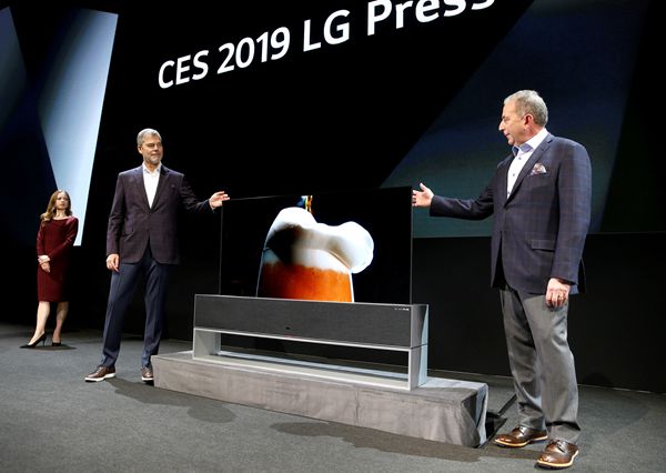 【香港商報网訊】當地時間7日上午8點,2019年美國消費電子展(CES)的第一場企業發布會,在拉斯維加斯由LG拉開帷幕。該公司推出的全球首部可捲曲OLED電視備受關注。