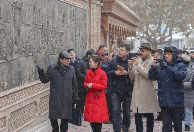 2018年12月29日,驻华使节及使节代表在新疆喀什古城景区参观。新华社