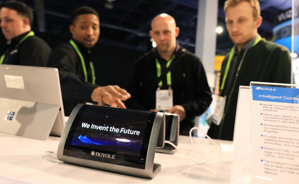 集成柔性显示屏的智能会议终端电子铭牌首次公开亮相