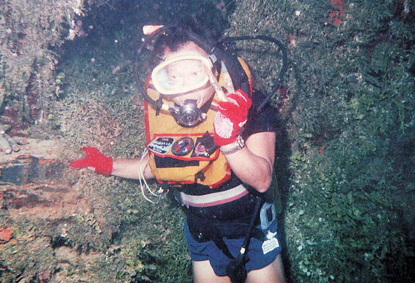 談起潜水的難忘事,朱翁在港海曾與一群凶惡程度僅次鯊魚的海狼擦身而過,若被海狼襲擊,手腳會咬斷。至於最浪漫旖旎的一次是在潜水天堂大溪地的百尺海底,竟然遇上的一位廿多歲的金发裸女,「她身無寸縷,沒有潜水器具,水中說不到話,她示意回到水面,我跟着她上潜,回到岸上她穿回衣服,可惜我不懂法國話,沒法溝通。」