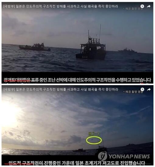 韩方此前公布视频中,日机抵近韩舰前后对比图。(图片:韩联社)