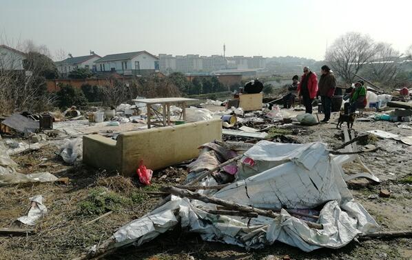 考古队员使用的蓬房被拆后一片狼藉。