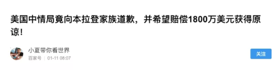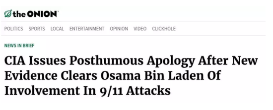 该文声称,美国中情局承认本·拉登和911事件无关,向其家族致歉。我搜索发现,这样的惊天新闻,原来是来自专门生产讽刺性假新闻的洋葱新闻。