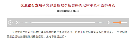 银保监会开会的同时,1月16日,交通银行发展研究部总经理李杨勇落马。