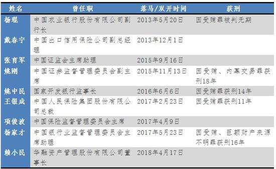 值得一提的是,这几年来,在反腐态势高压的情况下,至少有9个中管“金融虎”应声落马。