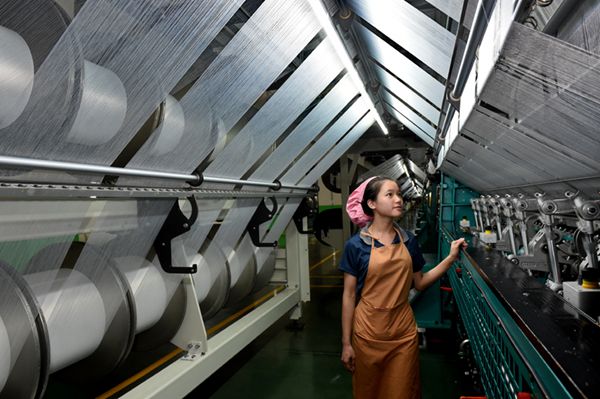 2018年12月21日,民营企业福建华峰新材料有限公司工人在生产制鞋面料。新华社记者 张国俊 摄