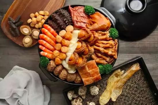 囍凤楼推出的新旺如意盆菜,除了名贵的食材,采用火腿、瑶柱、老鸡、精肉等熬制了8个小时以上的鲍鱼汁是整个菜的灵魂所在,开锅之前先浇汁,确保每一份食材都裹满了鲍鱼汁。送人或者自己家吃都是不错的选择!需要提前两天预约取货。