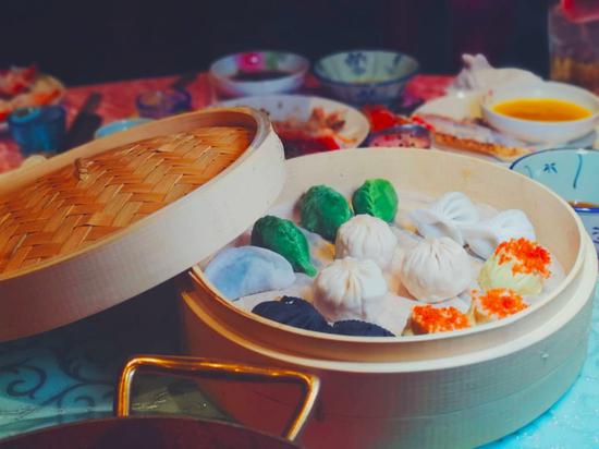 晚上没有吃到心心念念的点心,也不必遗憾,店里推出了,可以涮着吃的点心。C位非“小笼包”莫属,蟹子烧卖、什菌水晶饺、黑白虾饺、高山豆苗饺等人气都很高。
