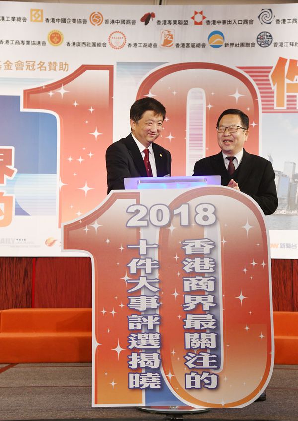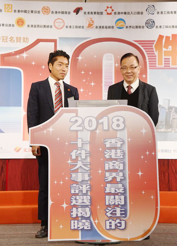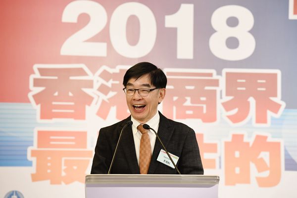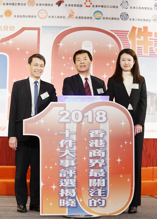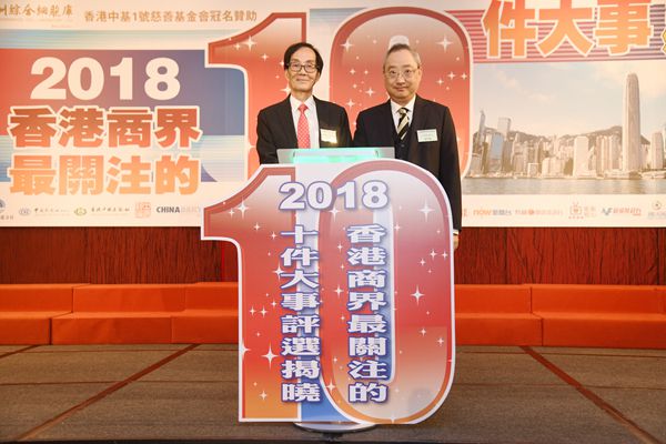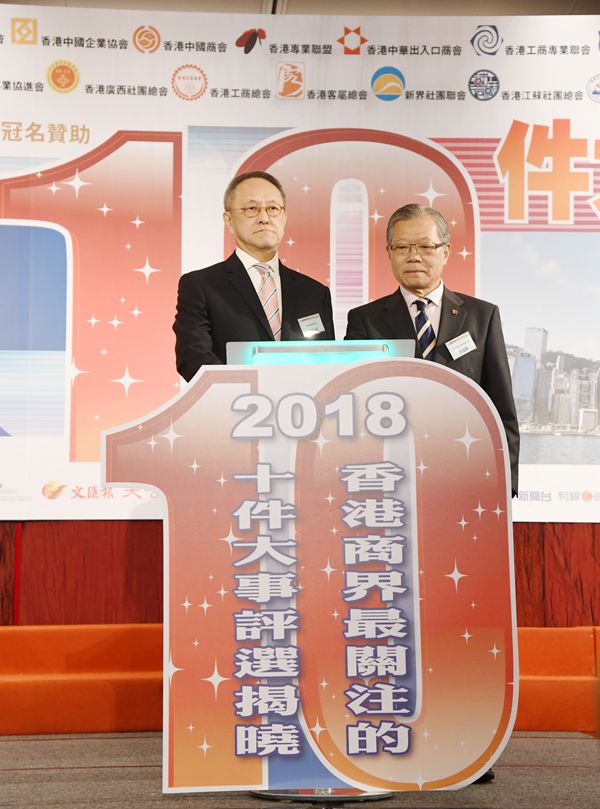 「2018香港商界最關注的10件大事」評選活動,由香港經貿商會會長李秀恒主持揭曉環節。他在台上笑言,一年一度的評選活動好似現時流行的通識教育,令商界朋友一齊溫故知新,共同洽談未來計劃。改革開放40周年成最關注