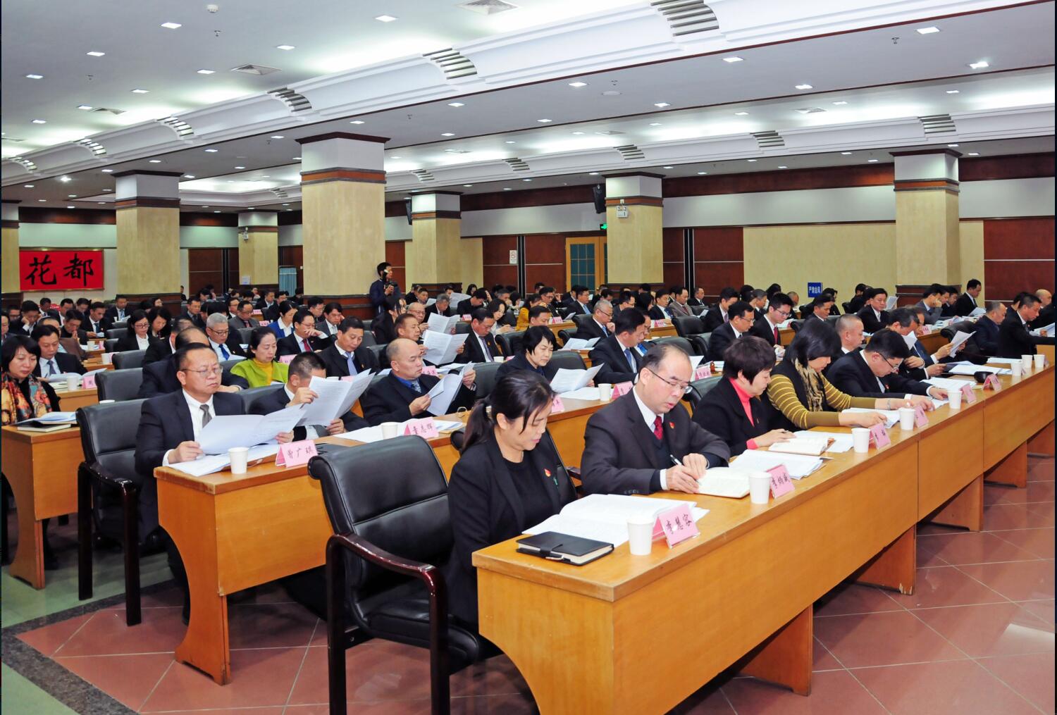 2日,中国共产党广州市花都区第十四届委员会第七次全体会议召开。会议的主要任务是:以习近平新时代中国特色社会主义思想为指导,全面贯彻党的十九大和十九届二中、三中全会精神,深入贯彻习近平总书记关于深化党和国家机构改革的重要论述,学习贯彻习近平总书记对广东重要讲话和重要指示批示精神,贯彻中央关于深化机构改革的决策部署,落实省委十二届五次全会精神和市委十一届七次全会精神,对全区机构改革进行动员部署、推动落实。区委常委会主持会议。区委书记黄伟林代表区委常委会作讲话,并就《广州市花都区机构改革方案》作说明。全会审议通过了《中国共产党广州市花都区第十四届委员会第七次全体会议决议》。