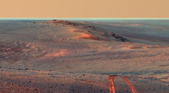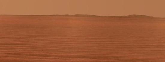 2010年10月31日,“机遇号”在火星上工作的第2407个火星日,用全景相机记录下了这一东方地平线的景象。