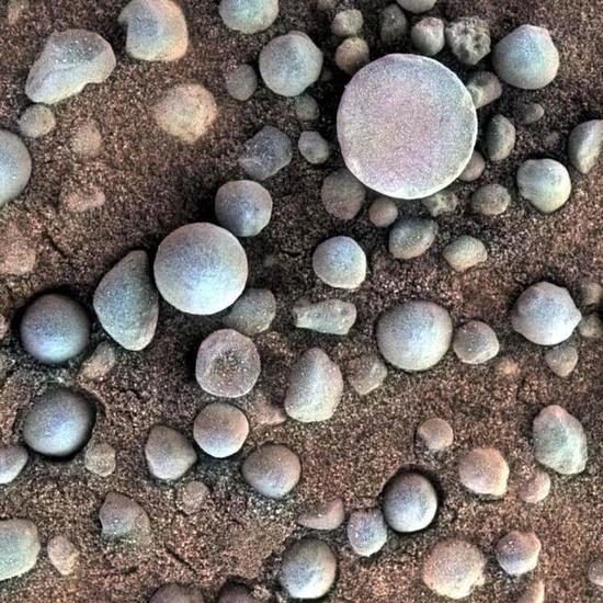 在这张特写照片中,火星表面的小球体位于弗拉姆撞击坑附近,火星探测车“机遇号”在2004年4月访问了这处区域。