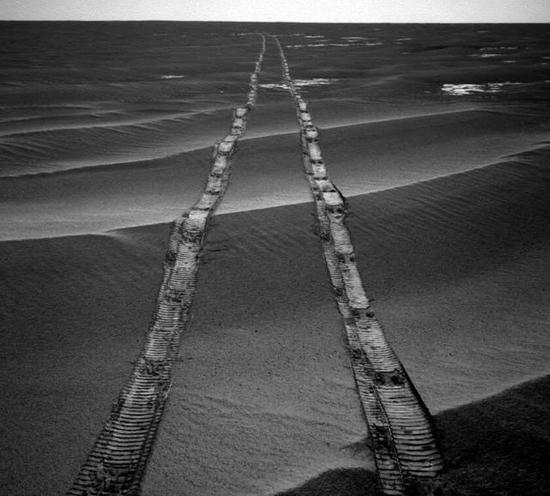在这张导航相机原始图像中,2010年8月4日,“机遇号”火星车“回望”了自己的行进轨迹。喷气推进实验室是位于帕萨迪纳市的加州理工学院的一个分部,负责管理美国宇航局科学任务理事会的火星探测车项目。