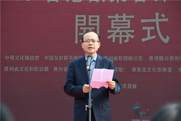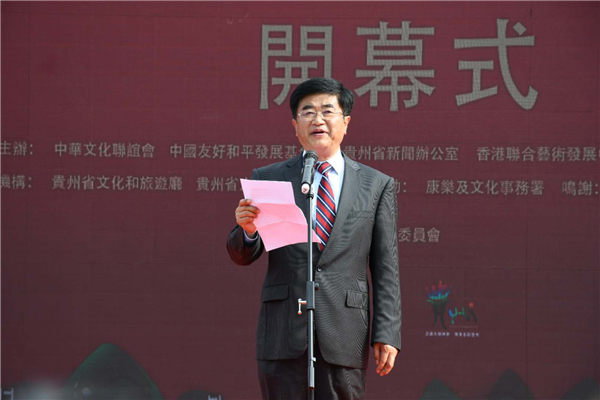 杨健在致辞中说,贵州与香港长期以来商贸来往密切,两地人民骨肉相连,情感纽带跨越山海。去年6月,我率香港文化界贵州参访团前往贵州,一周的行程给团员们留下美丽而深刻的印象,也正是这次贵州之行提出了在港举办「文化庙会」的设想。杨健表示,今天,多彩贵州正式走入香港,文化庙会带市民一起欣赏贵州美景、体验多彩文化、品尝黔地美食,相信将给香港市民一个更加多元、更加多样、更加多彩的贵州印象。