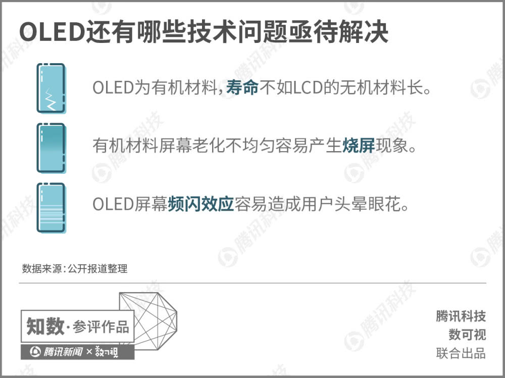 当然OLED并不是完美的显示材料,它还有一系列的技术问题需要克服。