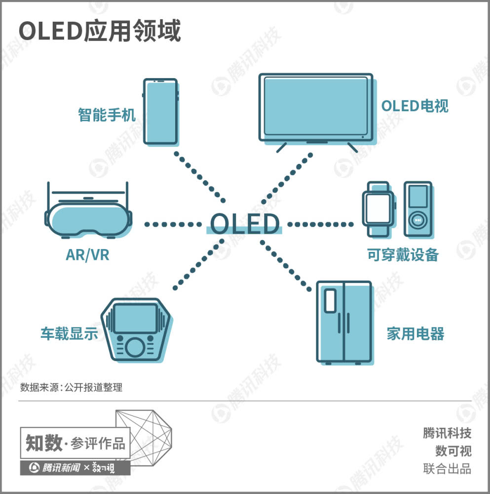Organic Light-Emitting Diode (OLED) 指有机发光二极管,OLED 屏幕具有“自发光”等特点,逐渐替代了前一代的LCD,OLED屏幕现被广泛应用在手机全面屏和户外广告屏制造当中。