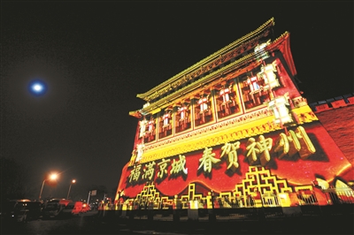 元宵佳节,一场灯光视听盛宴首次“扮靓”近600年的德胜门城楼摄影。记者 魏彤